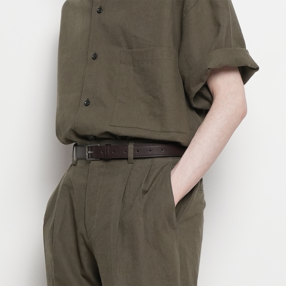 M23 스티치 하프라운드 버클 페이크레더 벨트 브라운