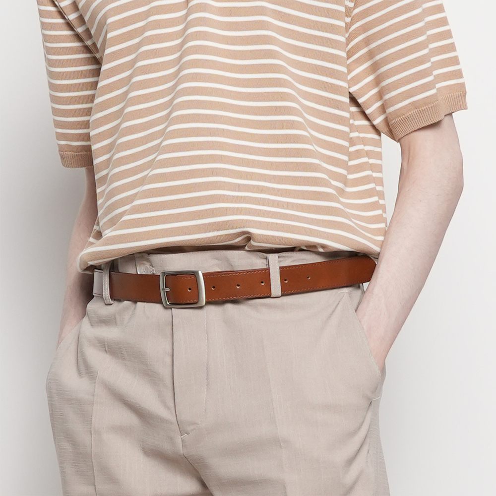 M23 스티치 하프라운드 버클 페이크레더 벨트 카멜