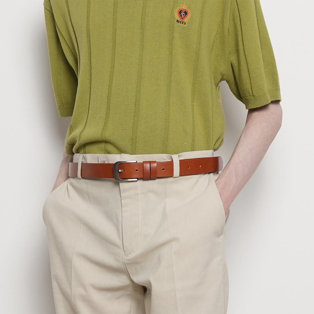 M23 스티치 하프라운드 버클 페이크레더 벨트 카멜