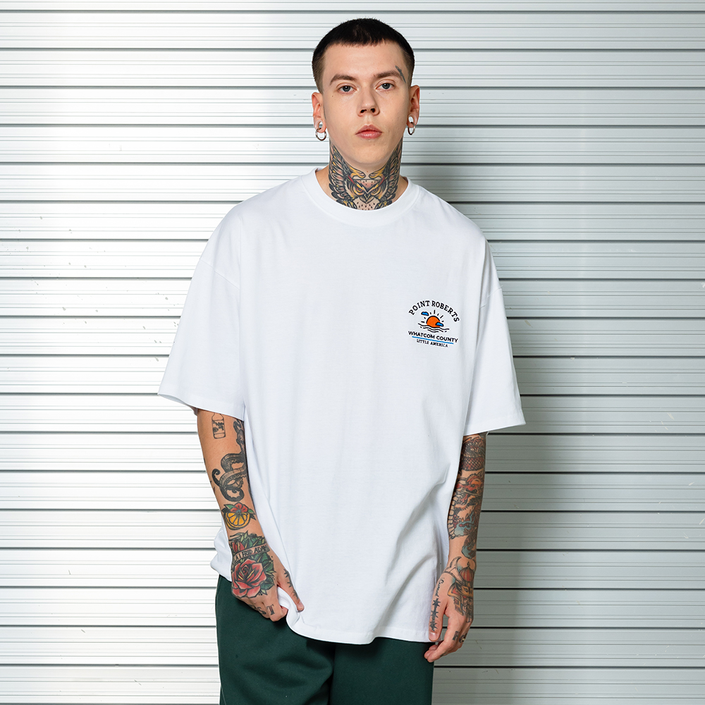 가벼운 소재로 그래픽이 특징인 스트릿 캐쥬얼 반팔티셔츠