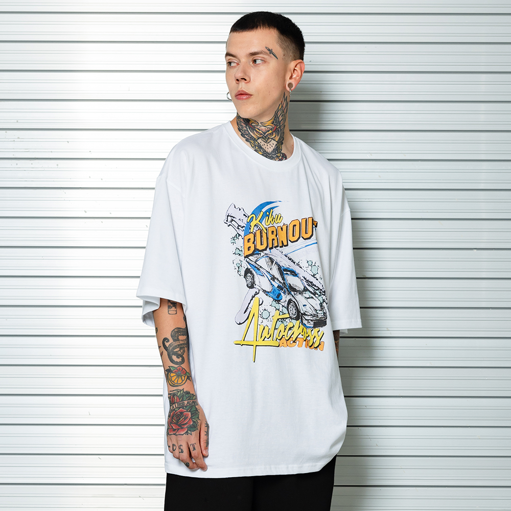 가벼운 소재로 그래픽이 특징인 스트릿 캐쥬얼 반팔티셔츠
