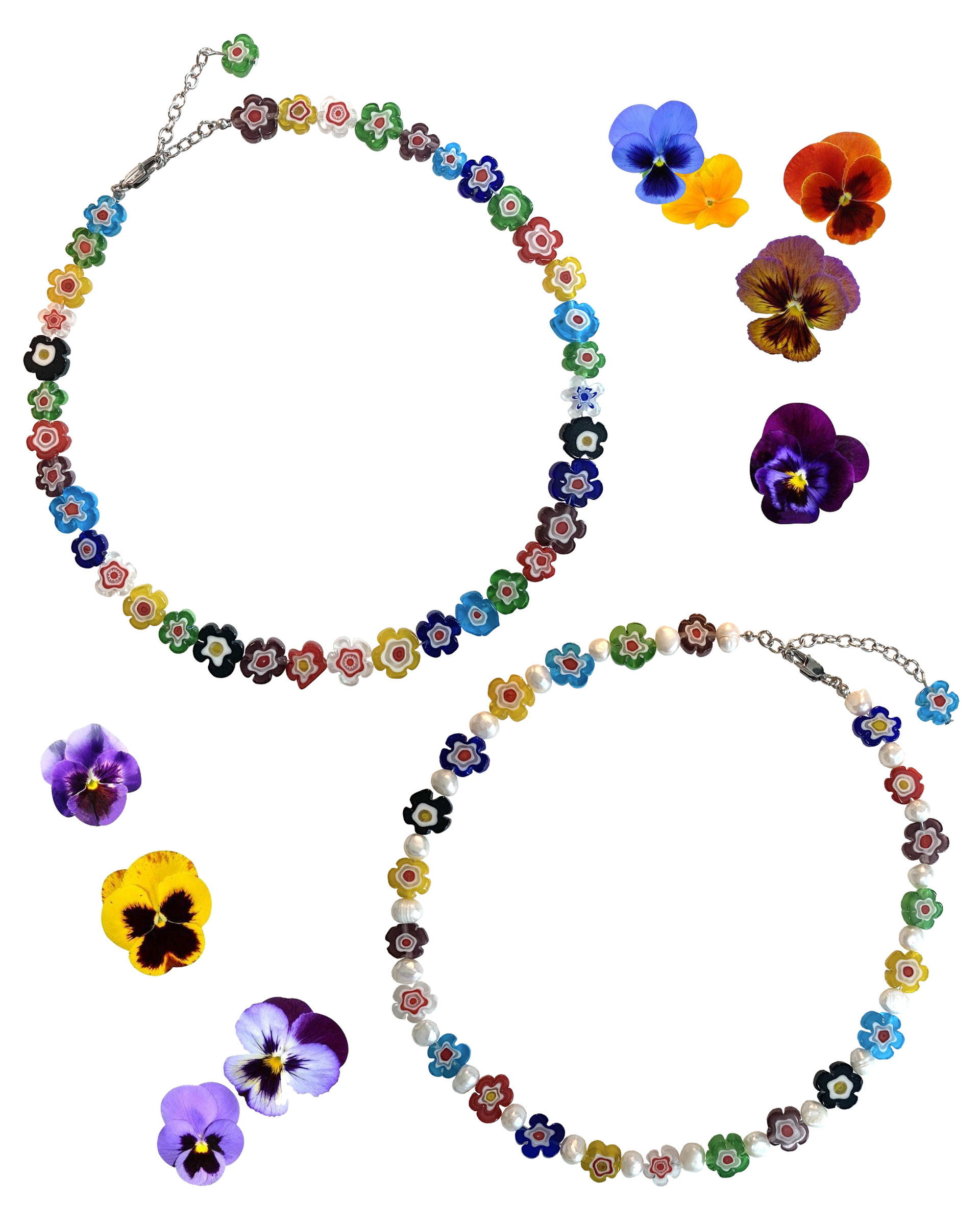 알록달록한 색감의 베네치아 유리와 담수진주의 조화는