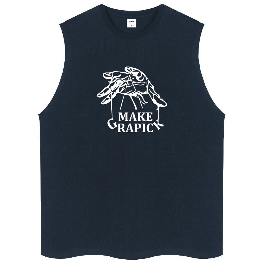 UNISEX 오버핏 싱글 MAISON프린팅 슬리브리스 탑 화이트네이비(FCB2TS300M)