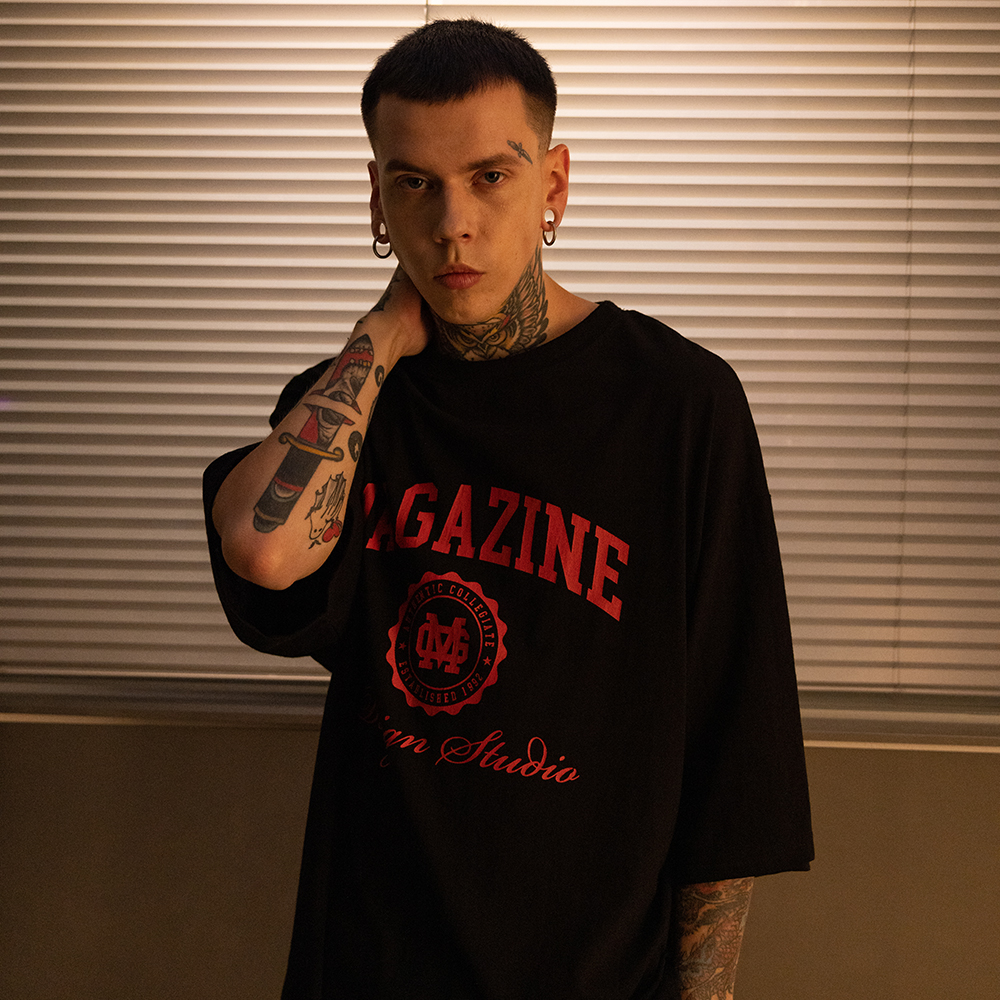 가벼운 소재로 그래픽이 특징인 스트릿 캐쥬얼 반팔티셔츠