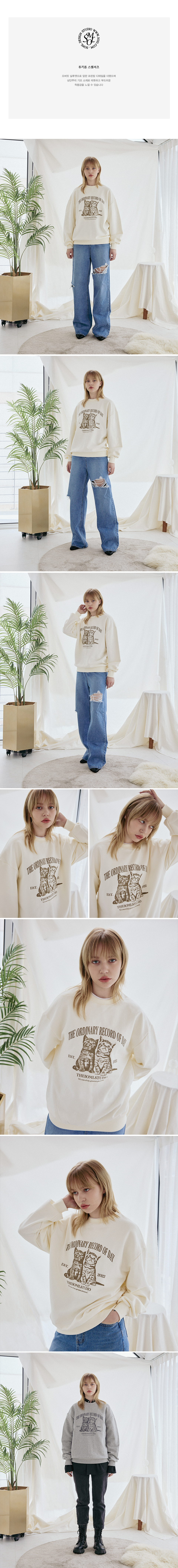 UNISEX 썬플라워 써클로고 레귤러핏 맨투맨 오트밀(FCF1TS327M)