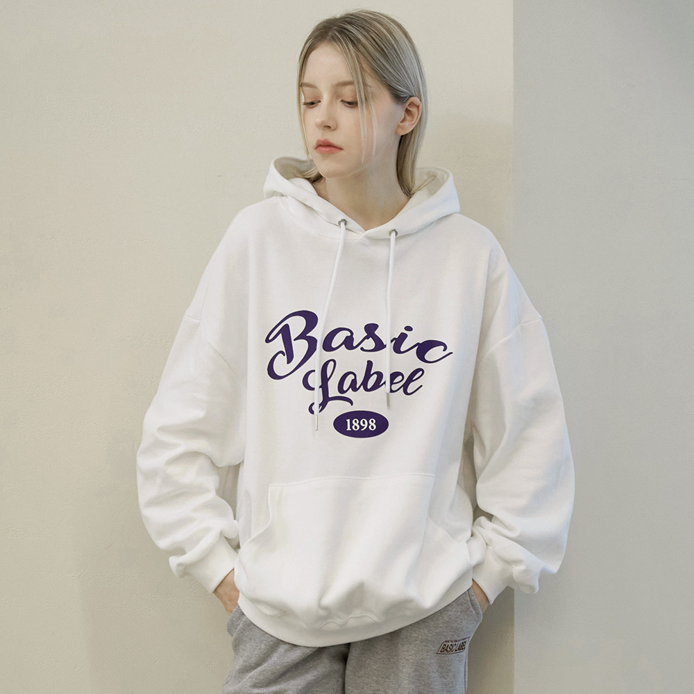 로고 슬림 후드 롱슬리브 (화이트 멜란지)