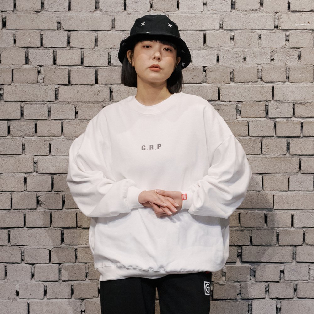 oml 아플리케 패치 스웻 셔츠 (화이트 멜란지)