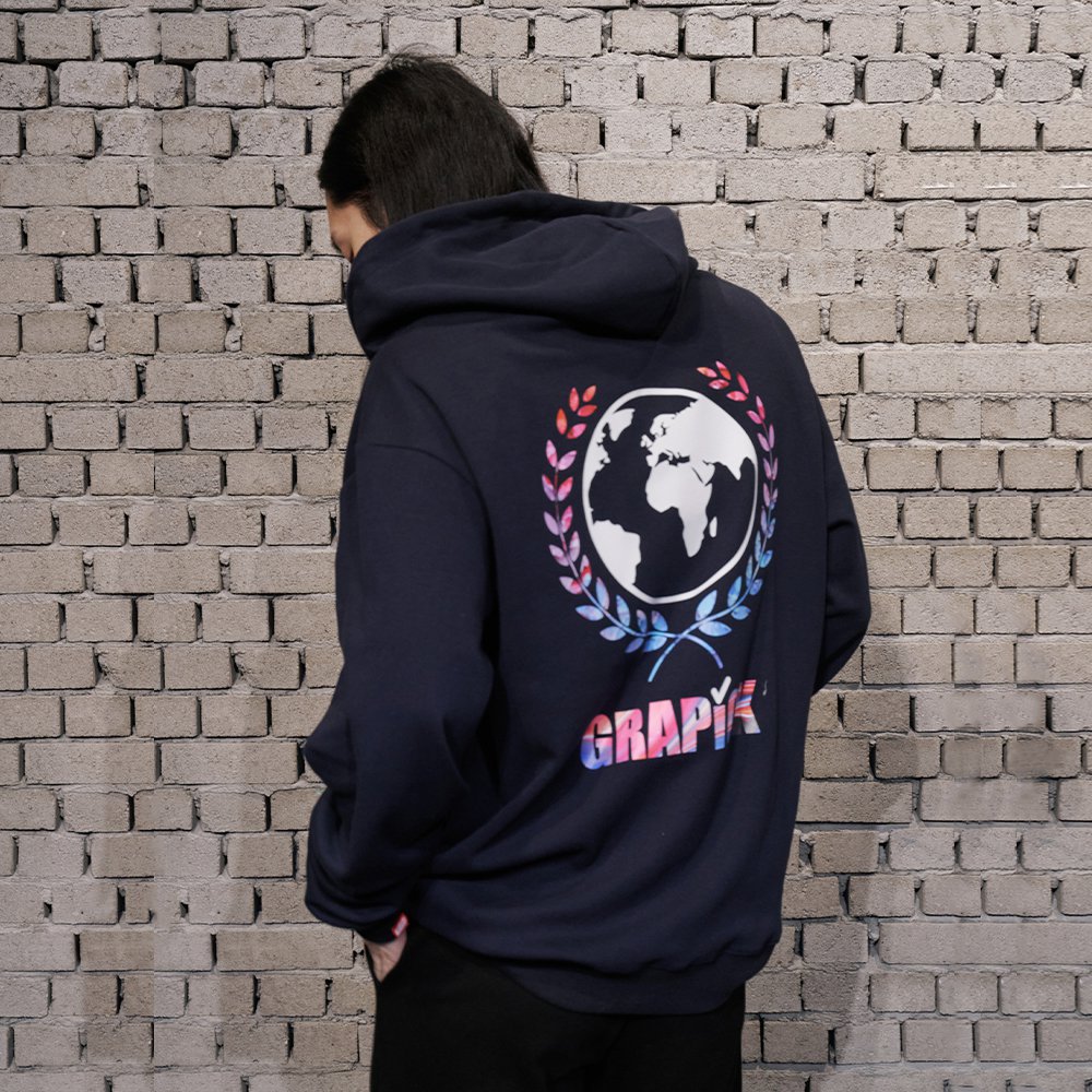 UNISEX 투톤 블러 엠보로고 후드 집업 네이비(FCF1ZP323M)
