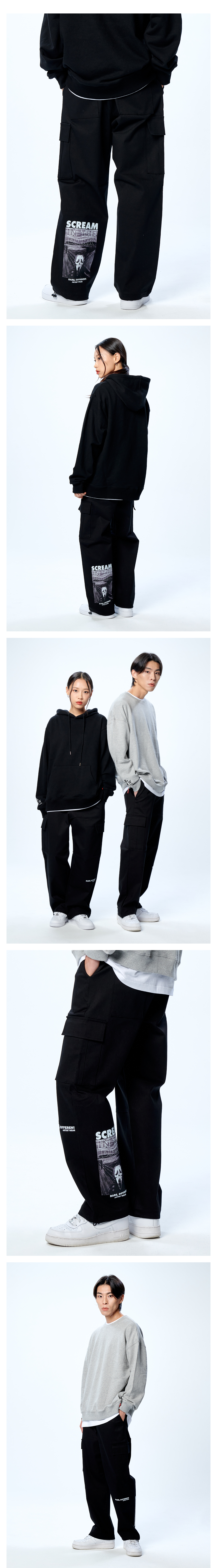 (기모) Cargo Carpenter Sweat Wide Pants ((black)