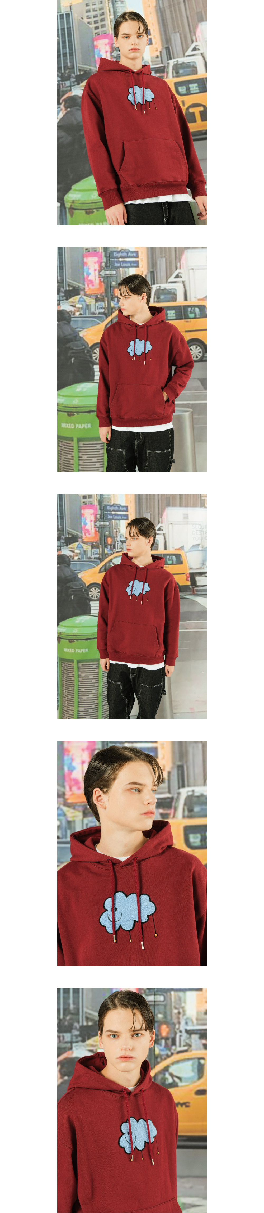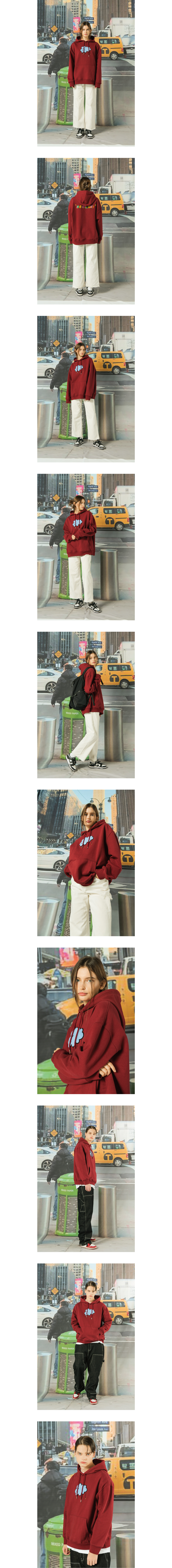 RIDING BIKE CAT 오버핏 후드 티셔츠 (와인)