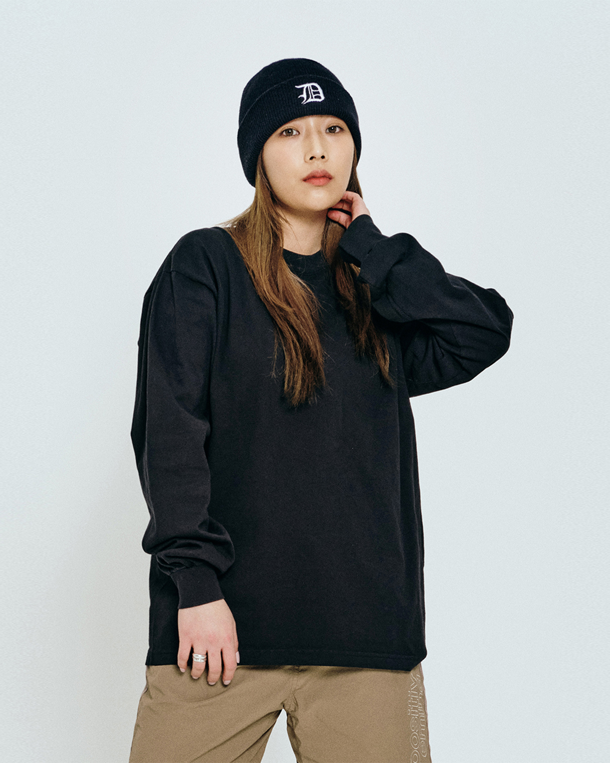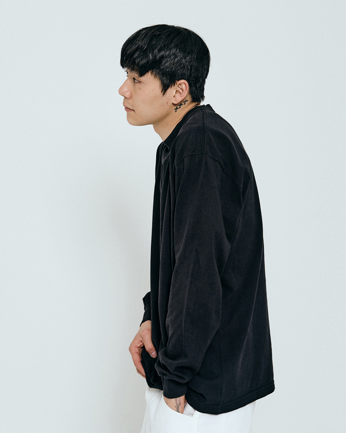 착용감: 온 몸을 감싸는 퀄리티 좋은 면 핏: 단단한 원단에 흘러내리는 멋이 더해져 우아한 핏 퀄리티: 최고급 전체적으로 가먼트다잉과 퀄리티 좋은 면, 거기에 우아하게 흘러내리는 핏까지 더해져 자연스럽게 고급스러운 롱슬리브 되시겠다.