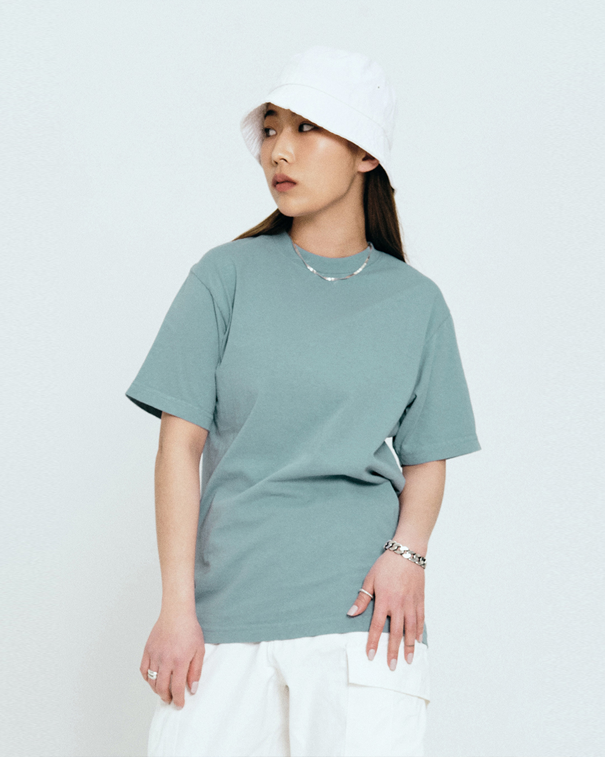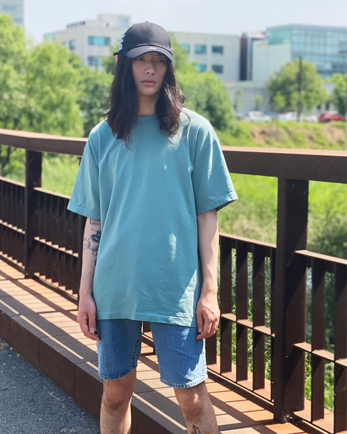 피그먼트 레터링 반팔 티셔츠_스카이블루