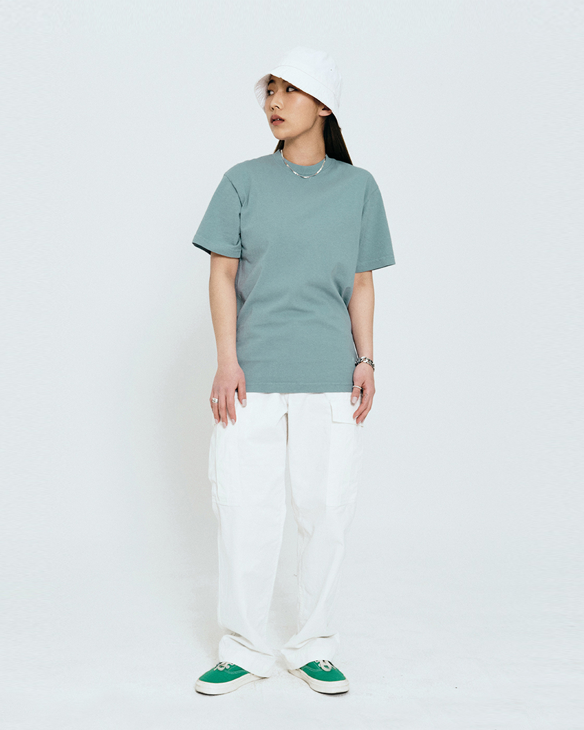 피그먼트 레터링 반팔 티셔츠_화이트