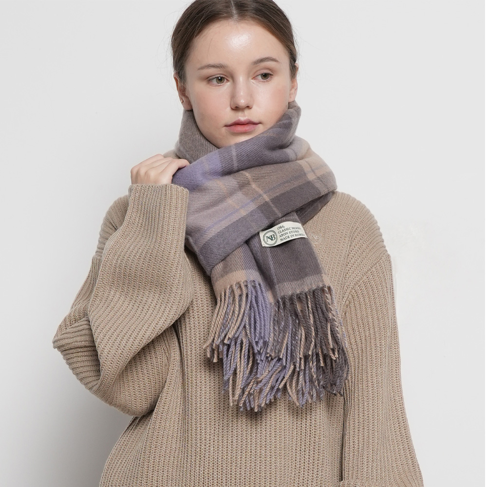 스트라이프 타이 니트 머플러 - 멜란지 그레이