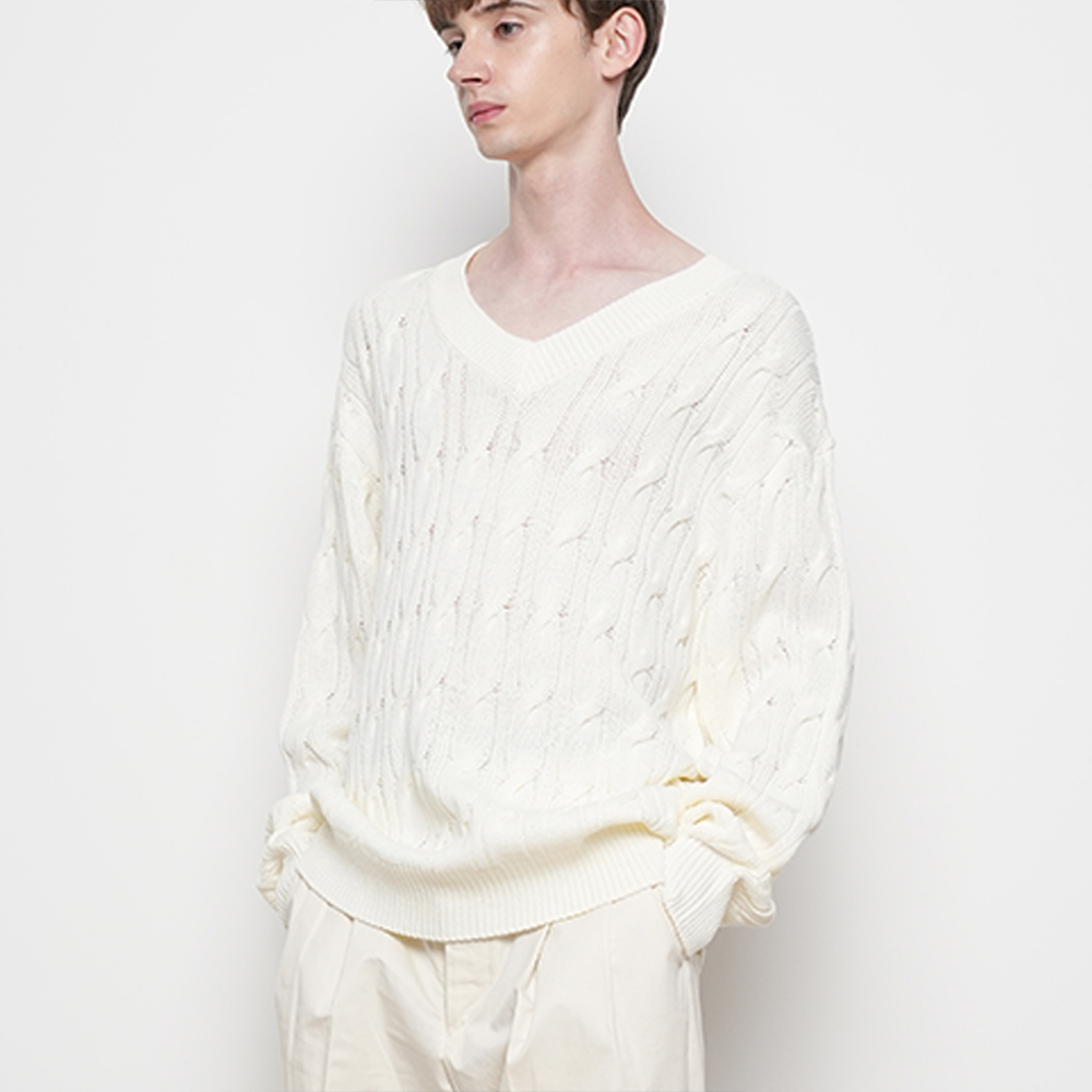 2-WAY 스켈레톤 후드 집업 니트 크림