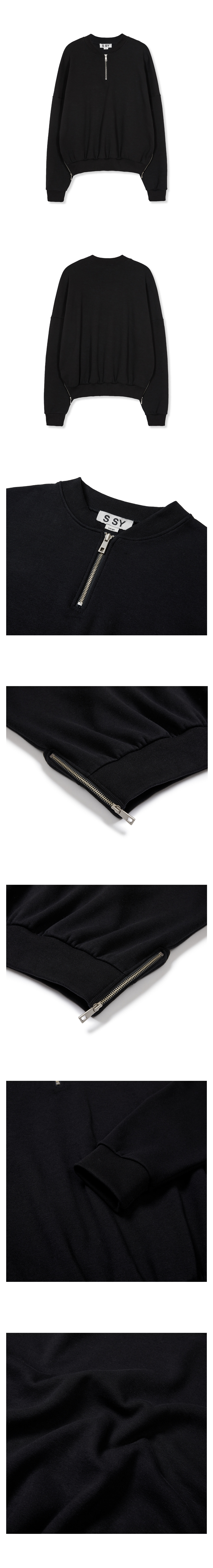 커먼즈 자수 로고 반집업 맨투맨_블랙