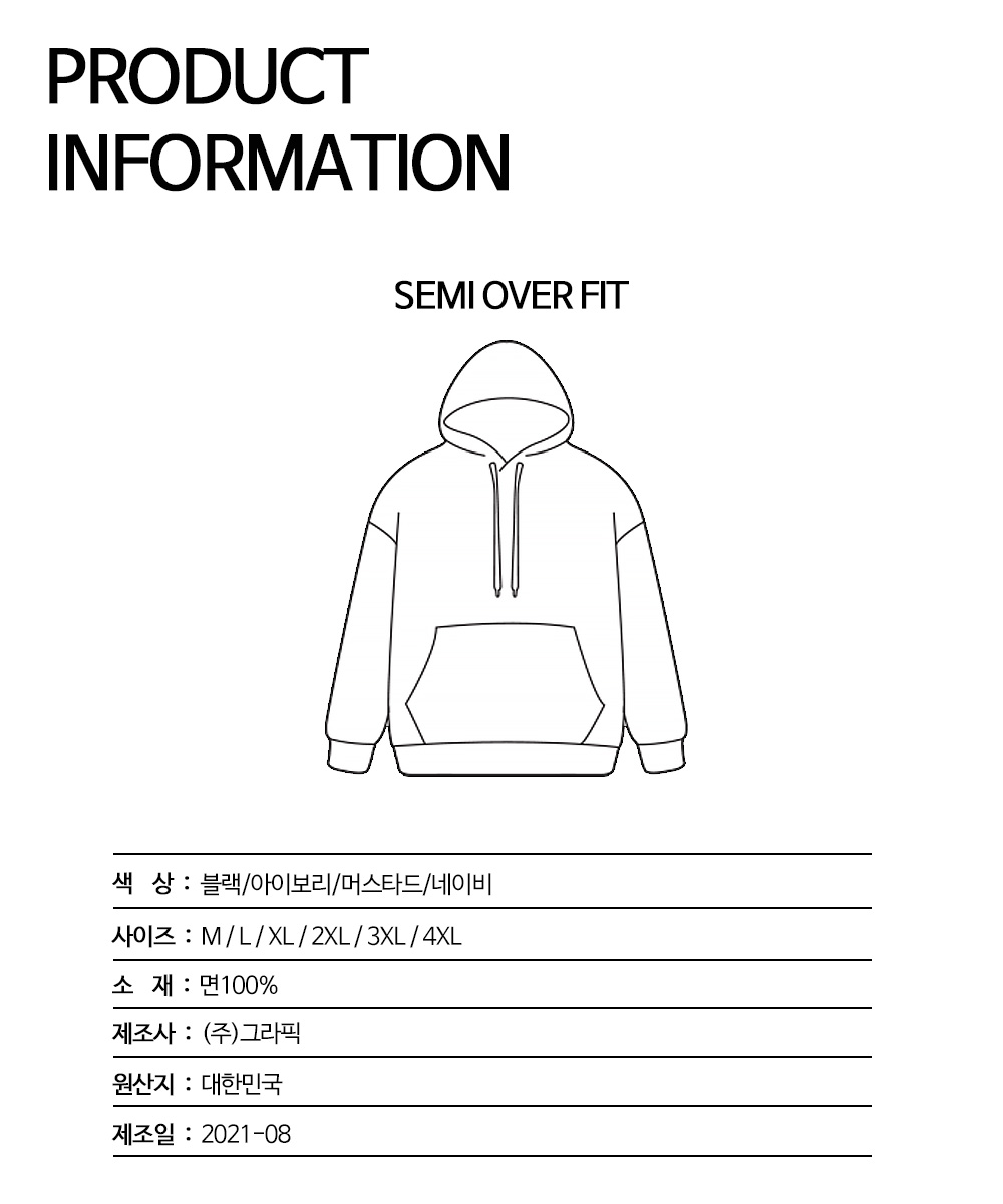 오버핏 후드 배색 엠보자수 후드 블랙(FCF3TS645M)