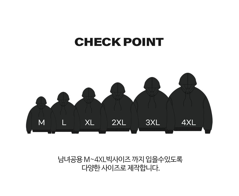 오버핏 후드 배색 엠보자수 후드