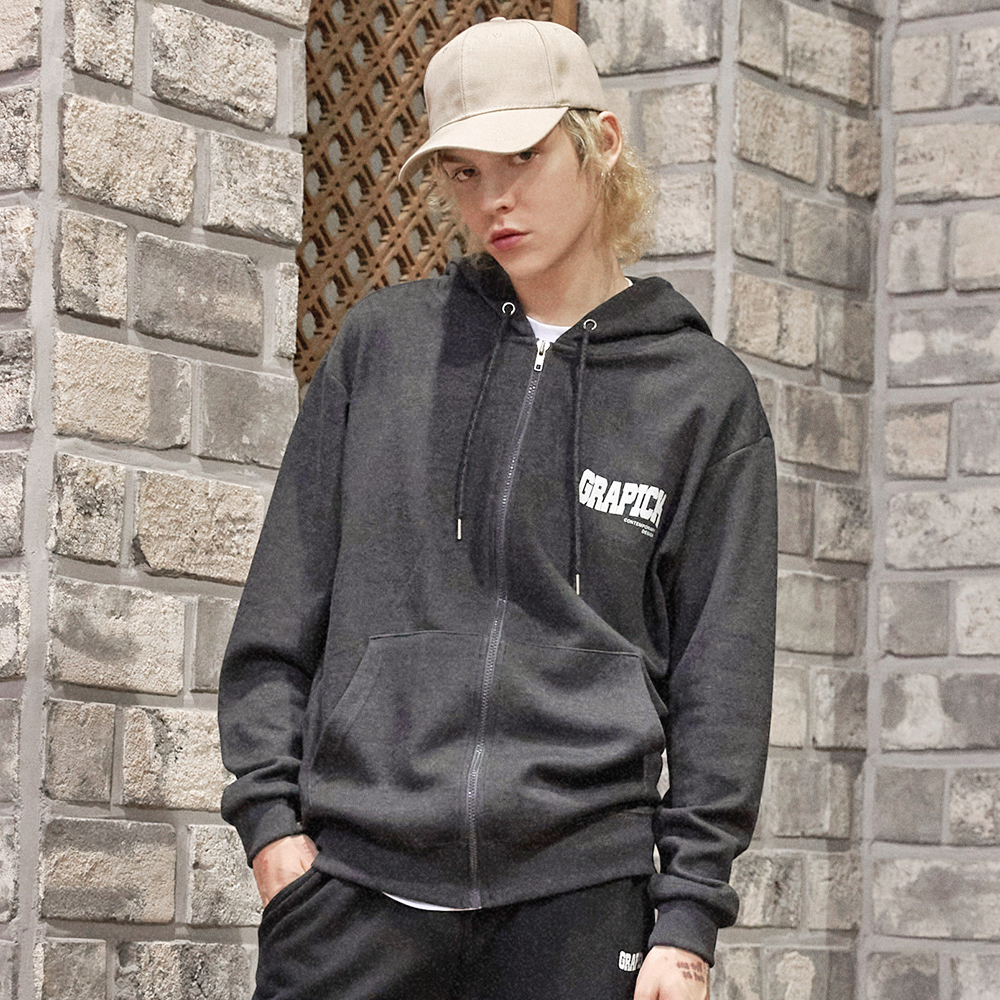 Skrr Painting Sweat Hood Zip-up ((melange gray))