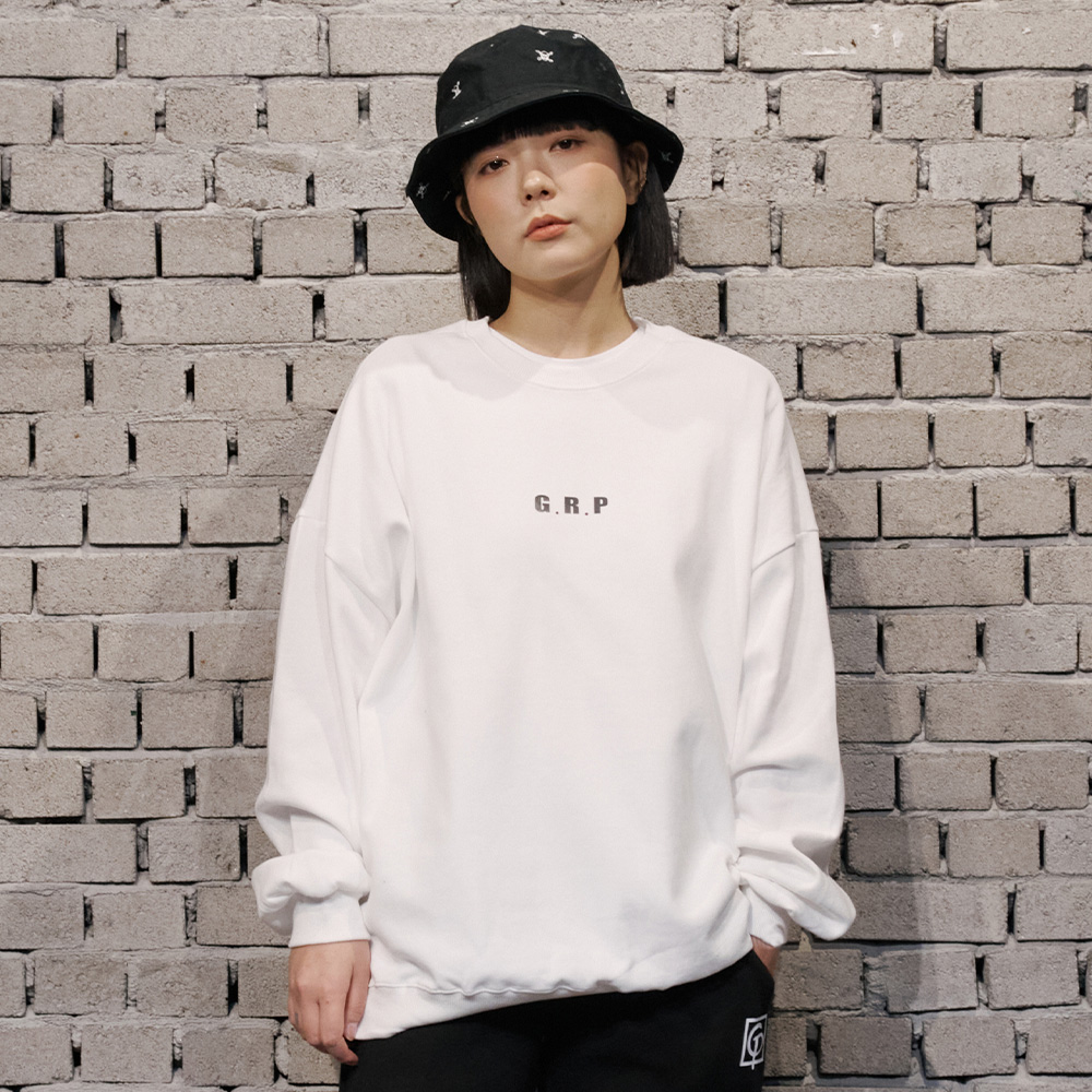 포지티브 자수 레글런 스웨트셔츠 멜란지화이트