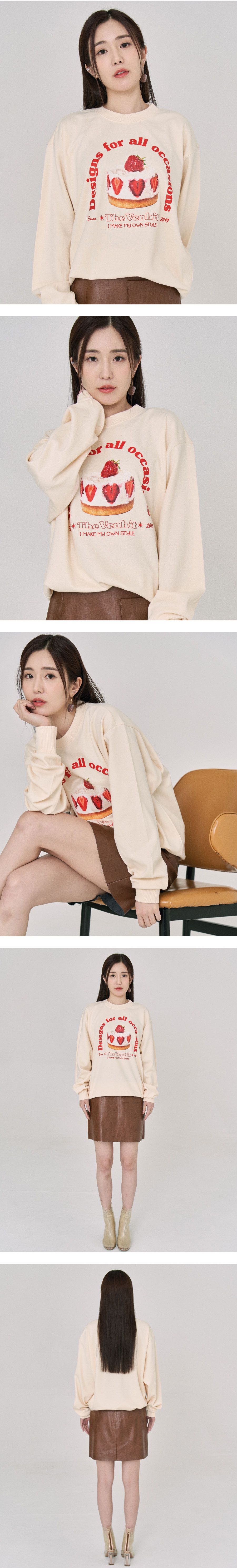 크롭핏의 러블리한 고양이 프린팅 맨투맨