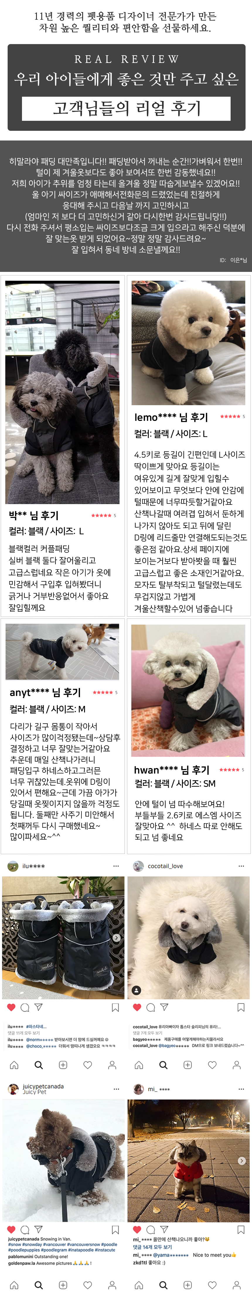 겨울철 눈 오는 날, 가벼운 비에도 댕댕이들과의 안전하고 따뜻한 산책길에 입을 수 있는