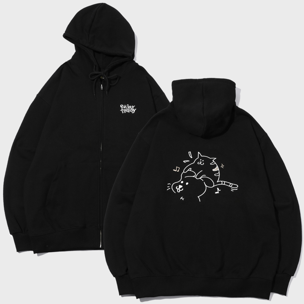 르커스텀 오버핏 무지 투웨이 후드집업 (차콜)