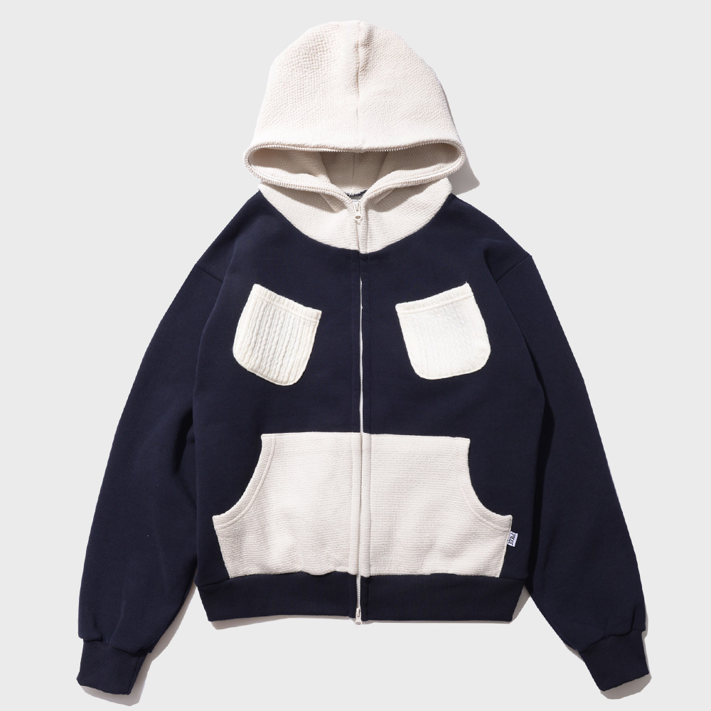 우먼즈 크롭 베어프렌즈 엠보자수 후드 오트밀네이비(FCB3TS359W)