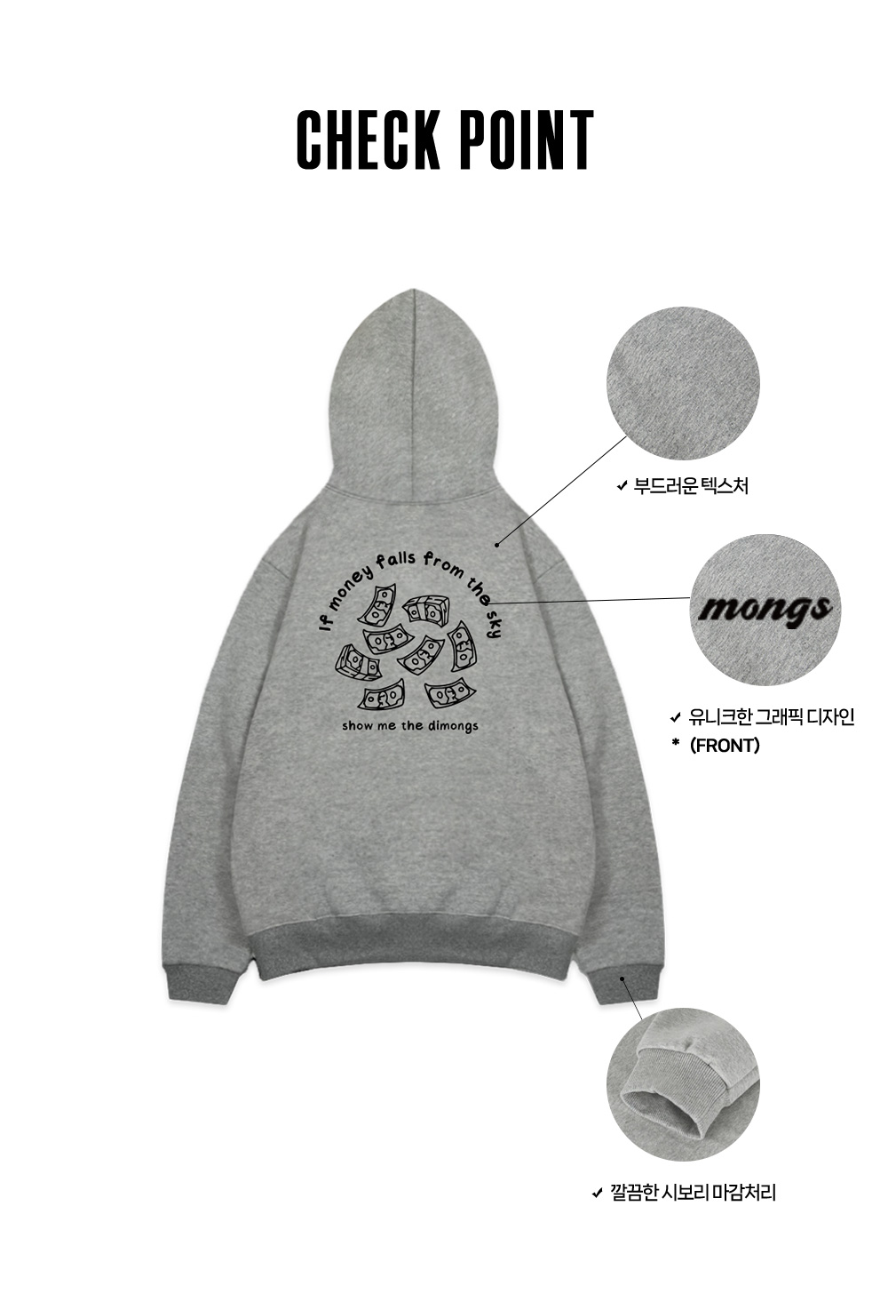 [2-WAY] KOKO 아플리케 피그먼트 후드 집업 스모크블랙