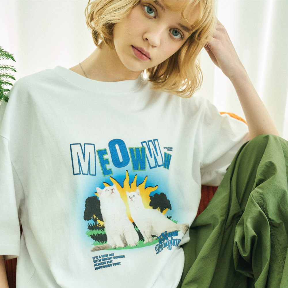가벼운 소재로 그래픽이 특징인 스트릿 캐쥬얼 반팔티셔츠