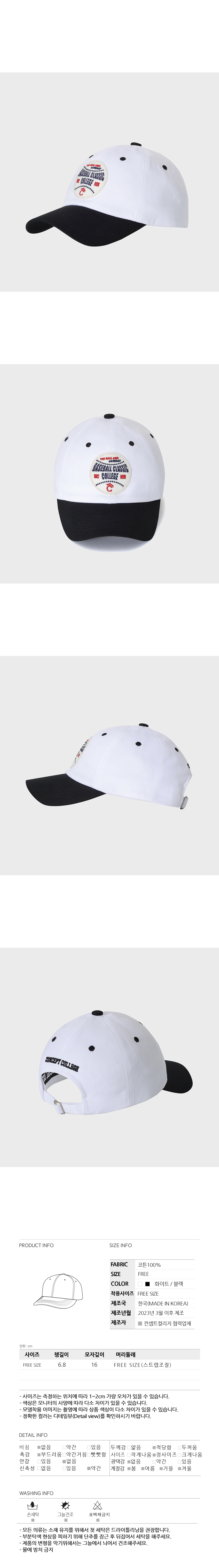 - 소프트 볼캡의 평균적인 16cm의 모자 깊이와 6.8cm의 챙 길이로 디자인되어 착용 시 스타일링이 이지한 제품입니다.