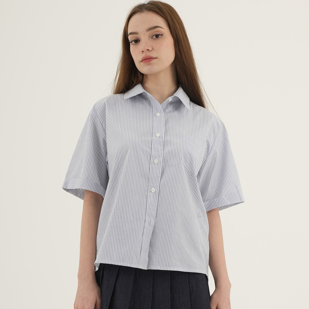 여리여리한 쉬폰소재에 잔잔한 도트 조직감이 돋보이는 블라우스예요.