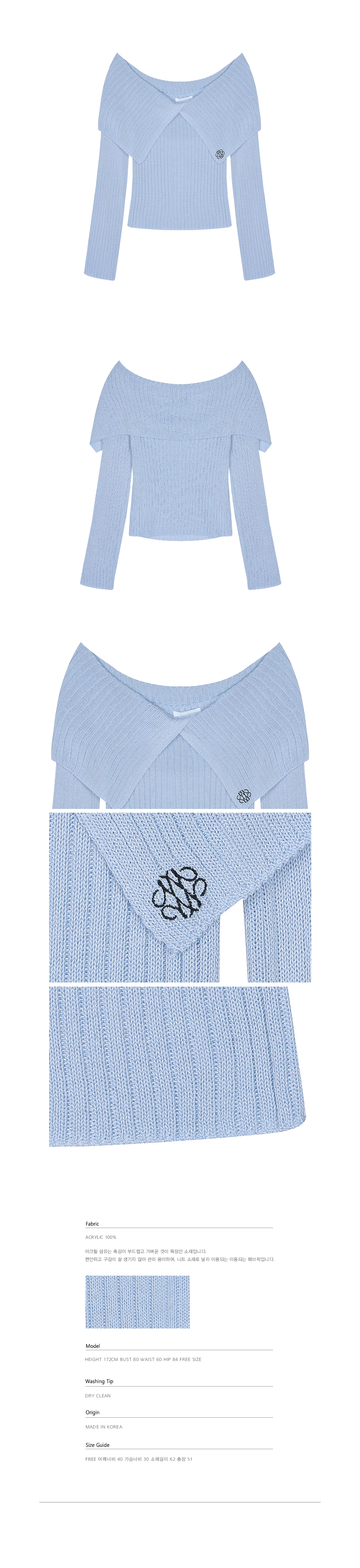 사선 플랩 형태의 비대칭 넥라인 디자인의 페미닌한 니트입니다.