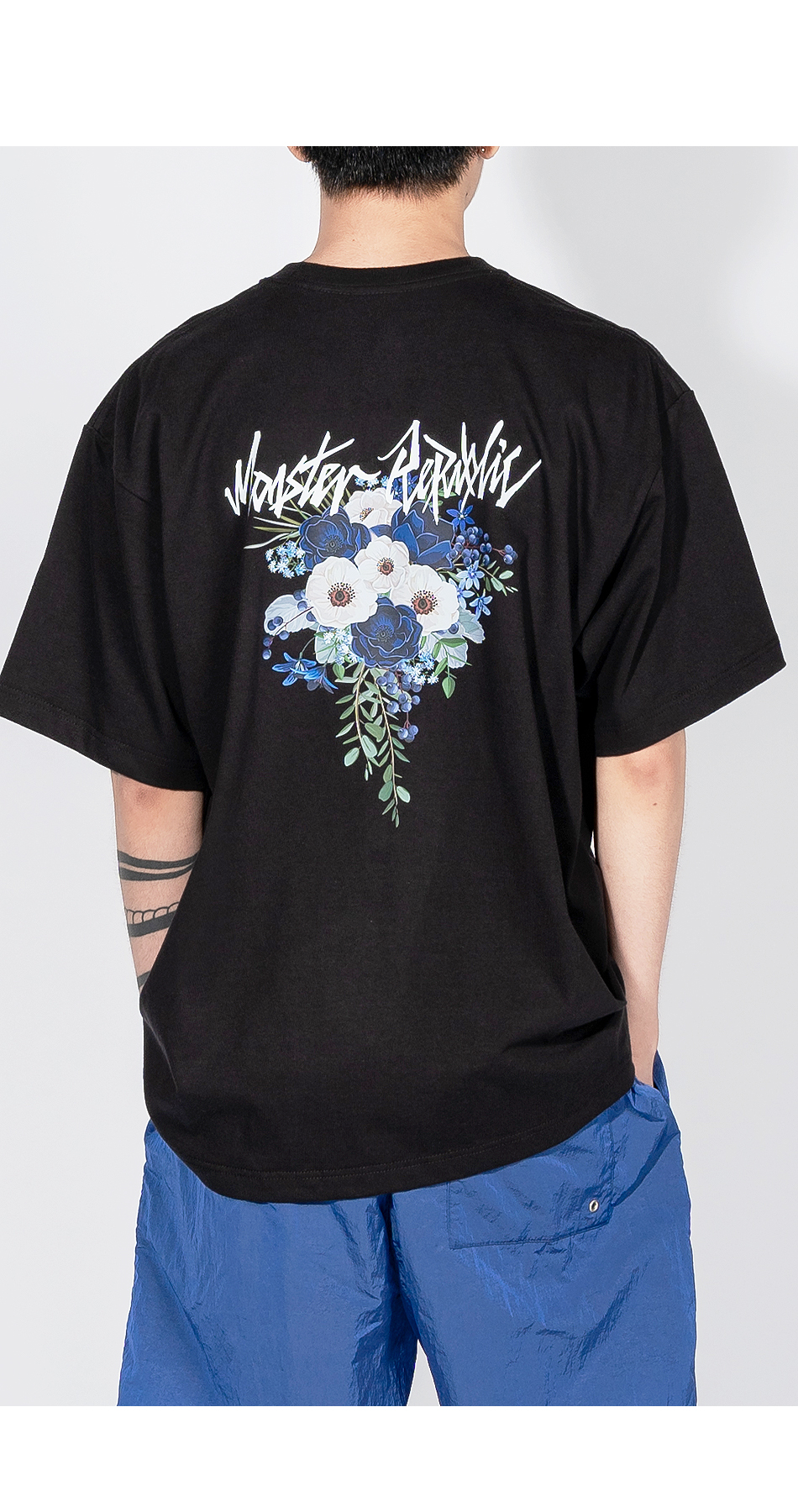 가벼운 소재로 그래픽이 특징인 스트릿 캐쥬얼 반팔티셔츠