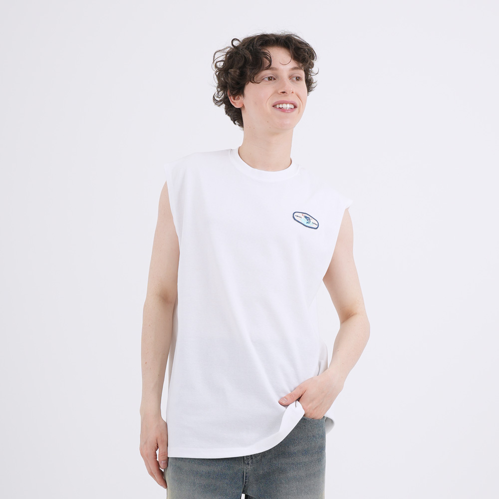 UNISEX 오버핏 베어푸 슬리브리스 탑 화이트(FCE2TS403M)