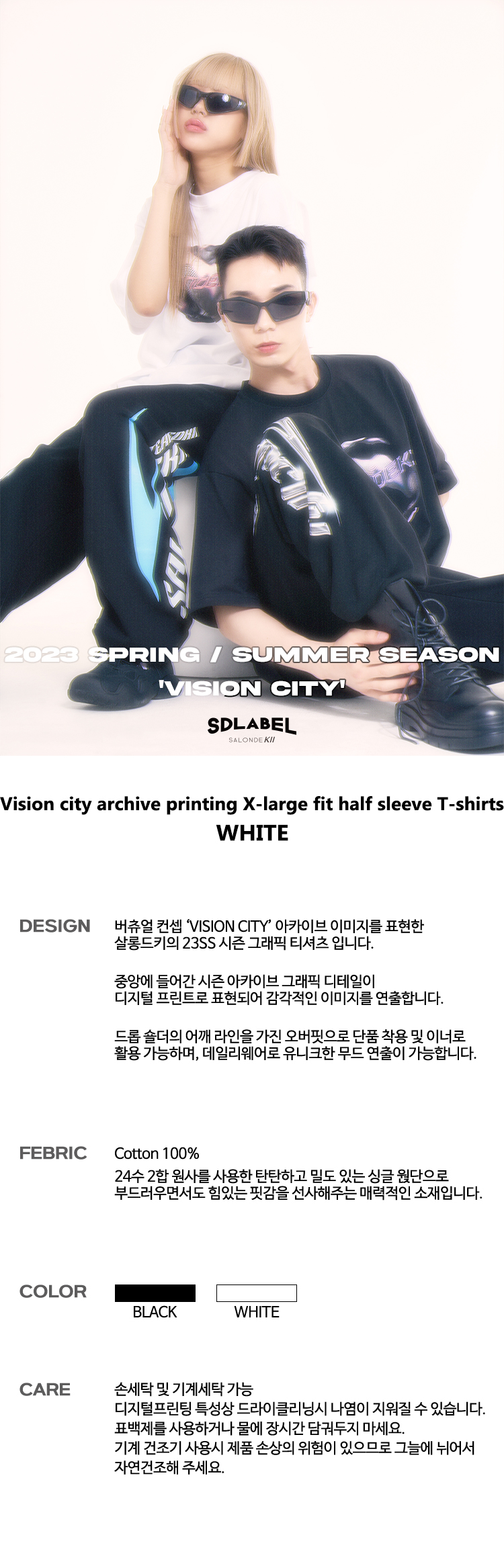 시즌 컨셉 VISION CITY의 아카이브 이미지를 표현한 유니크한 그래픽과 드롭 숄더와 넉넉한 품으로 제작된 오버핏 반팔 티셔츠입니다.