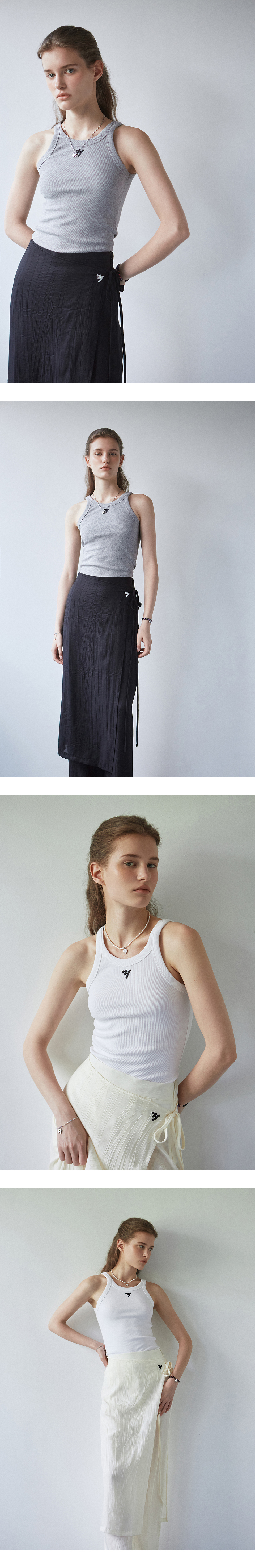 스트레이트 핏 팬츠에 랩스커트를 더한 레이어드 디자인