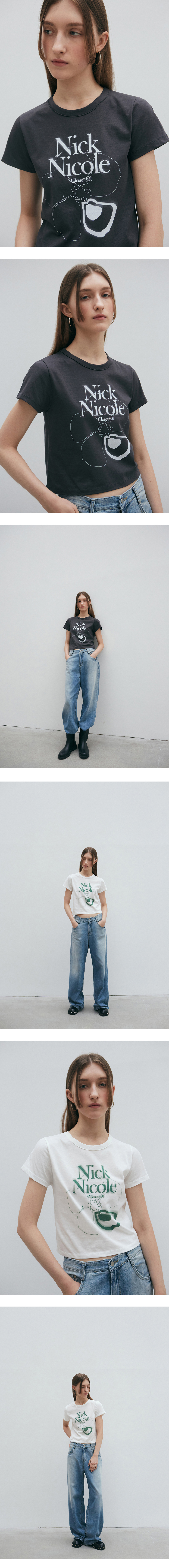 디어 블룸 크롭 반팔티 멜란지화이트