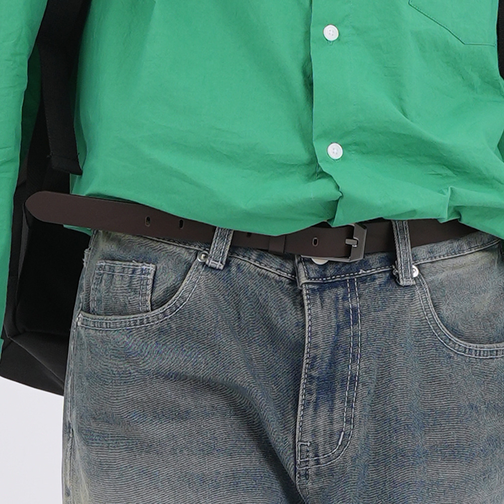 그리쉬 무광 렉탱글 리얼레더 벨트 브라운