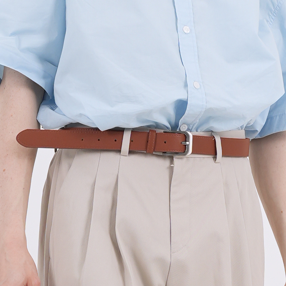 M23 스티치 스퀘어 버클 페이크 레더 벨트 브라운