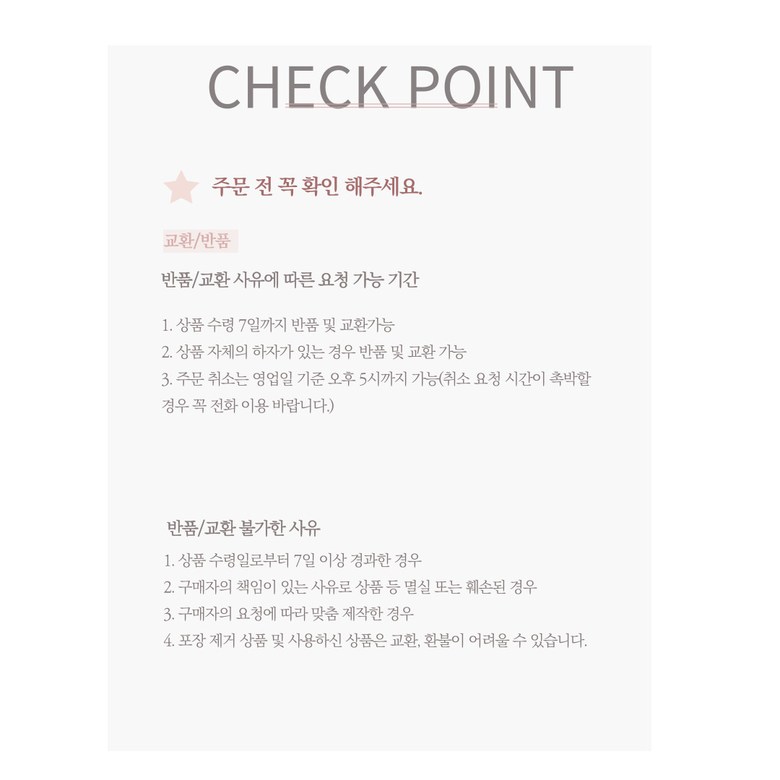 교환 환불처리가 불가하오니 이점 유의하시기 바랍니다.