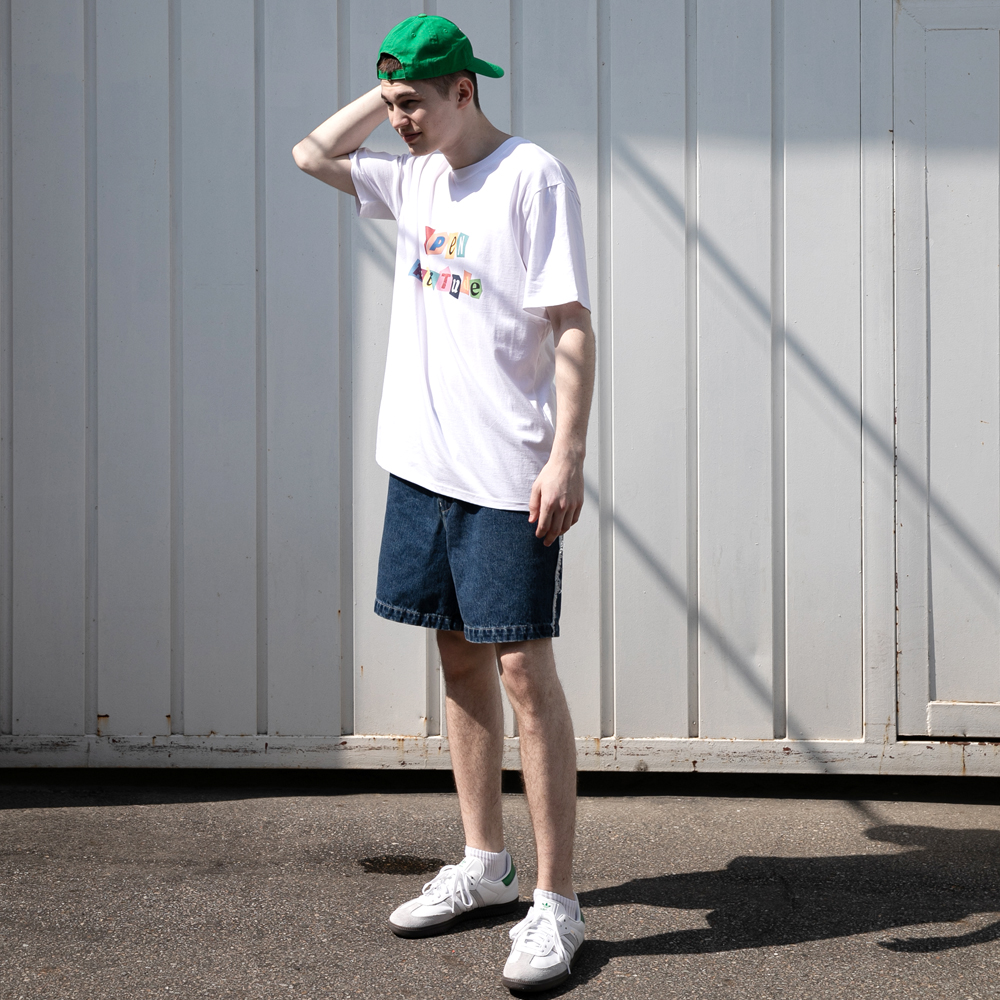 어른의 음료 소주의 컬러칩을 진하게 담은 데님 쇼츠입니다.
