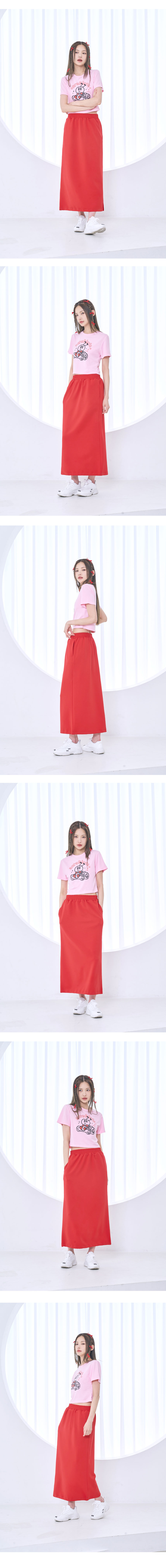 스트레치가 있는 코튼/레이온 소재의 스커트로 앞 뒤 라인에 절개 디자인을하여 날씬해보입니다.