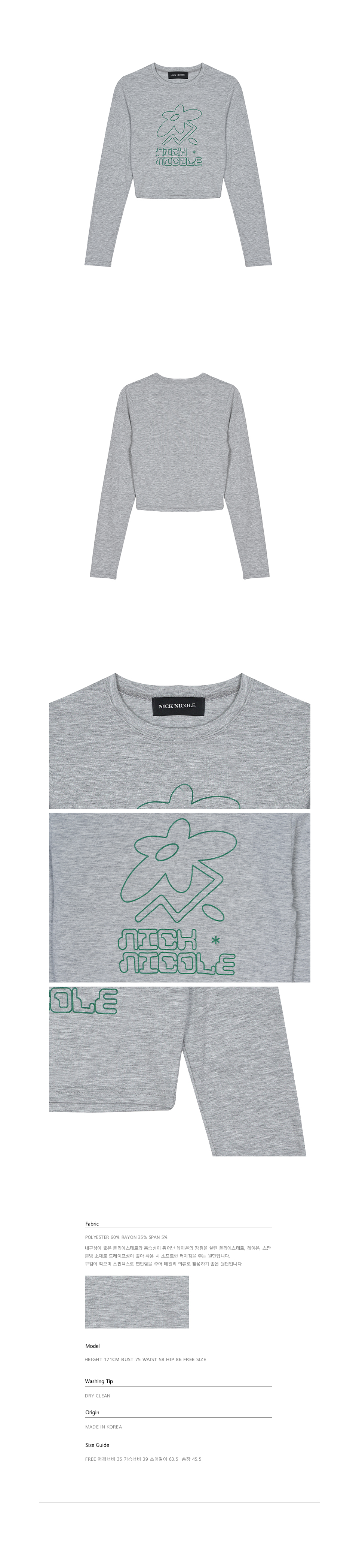슬림 soml 로고 롱슬리브 (멜란지 그레이)