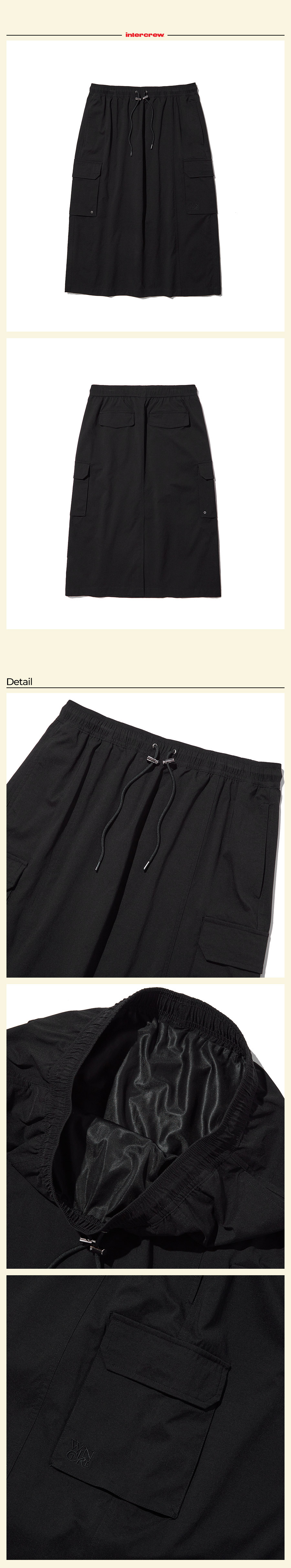 BIG POCKET H LINE FLOWER LONG SKIRT (BLACK)