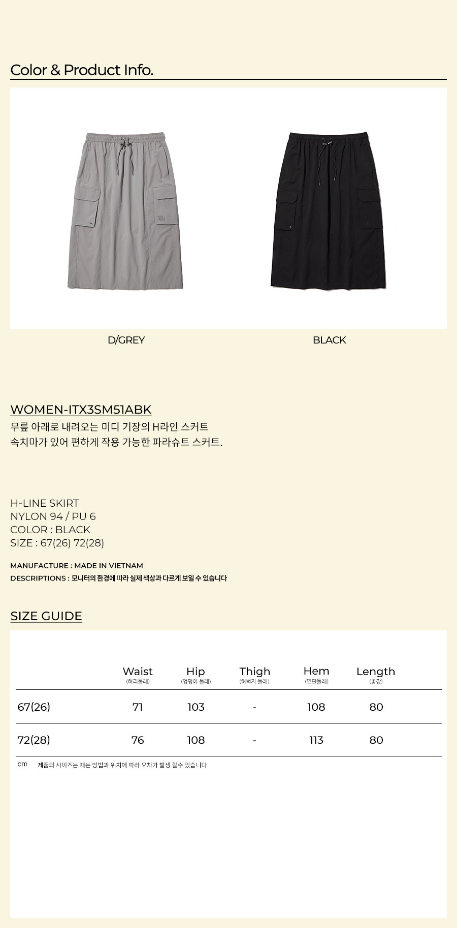 스트레치가 있는 코튼/레이온 소재의 스커트로 앞 뒤 라인에 절개 디자인을하여 날씬해보입니다.