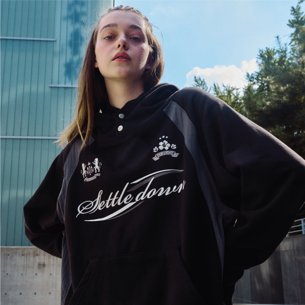 오버핏 후드 배색 엠보자수 후드 블랙(FCF3TS645M)