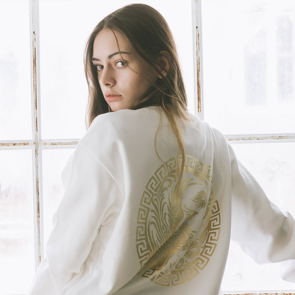 포지티브 자수 레글런 스웨트셔츠 멜란지화이트