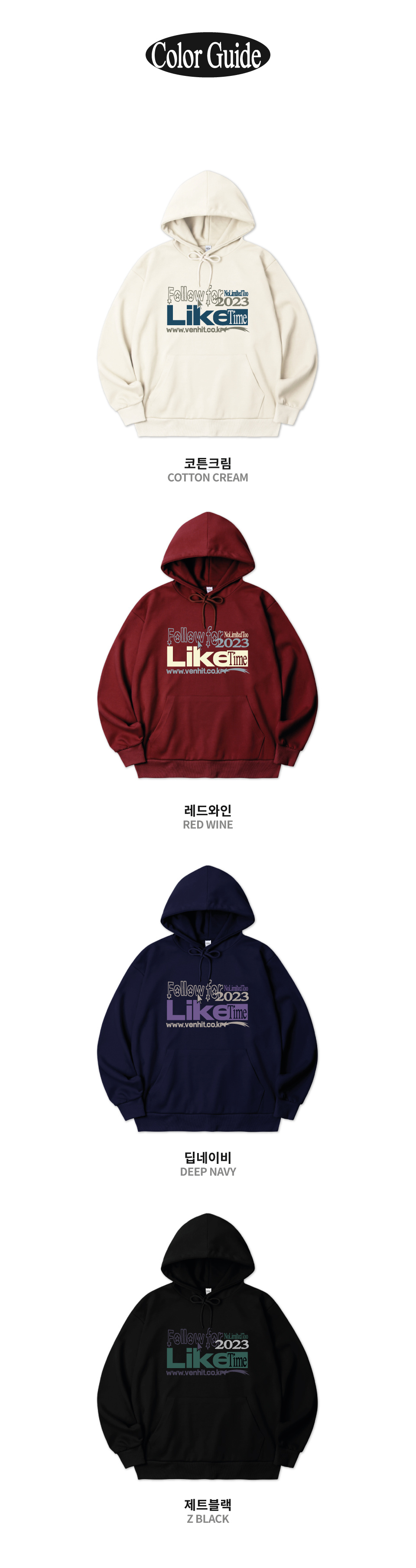 오버핏 후드 배색 엠보자수 후드