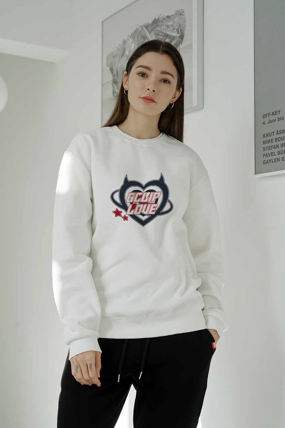 포지티브 자수 레글런 스웨트셔츠 멜란지화이트